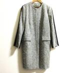 美品 Paul Smith ポールスミス ブラック ツイード切替 ノーカラーコート サイズ44L グレー ブラック レディース 古着 中古