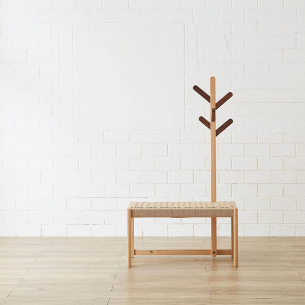 コートハンガー ポールハンガー 木製 日本製 国産家具 ベンチ付き イス付き 玄関 おしゃれ コート掛け 北欧 ウォールナット オーク ハンガーラック ハンガーポール 洋服掛け 帽子掛け バッグ掛け 人気 【送料無料】コートハンガー750