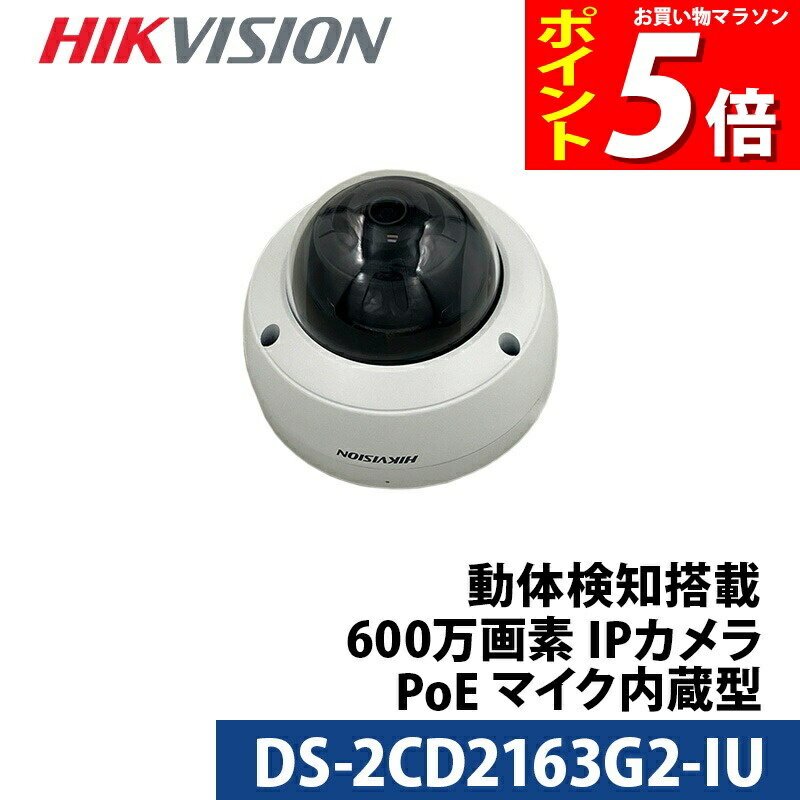 【ポイント5倍】600万画素 動体検知 マイク内蔵 HIKVISION(ハイクビジョン)防犯カメラ IP 屋外屋内 カメラ電源不要 スマホ監視 PoE DS-2CD2163G2-IU ドーム型 レンズサイズ2.8mm