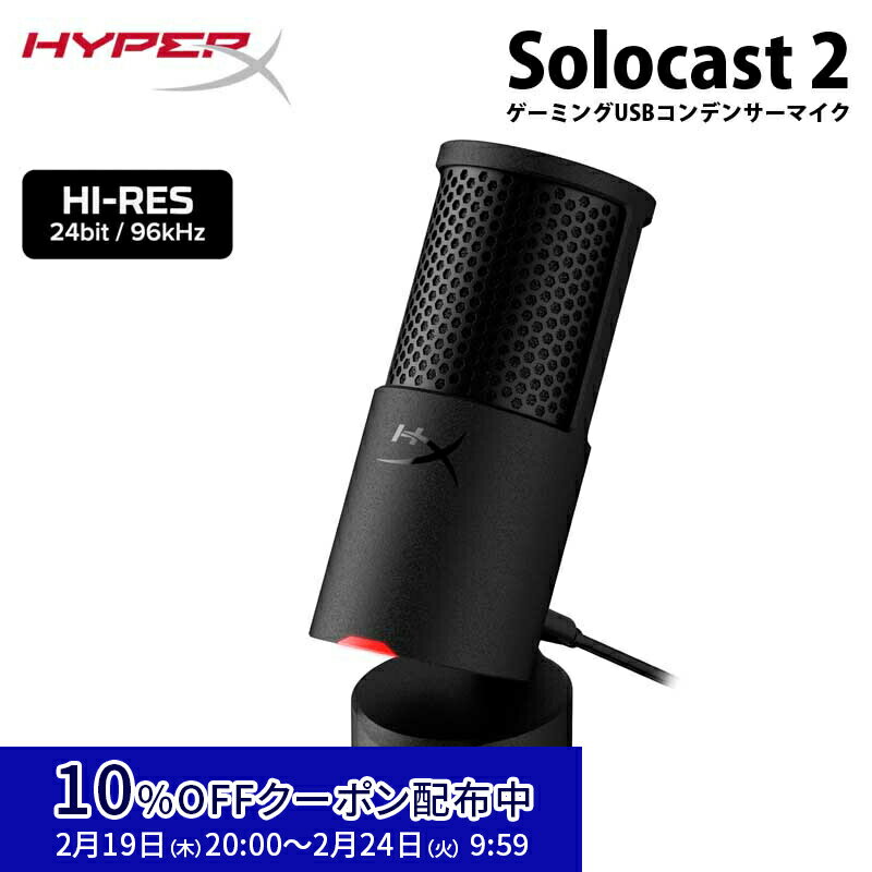 [10%OFFクーポン 2/24 朝まで][メーカー公式店]HyperX SoloCast 2コンデンサーマイク USBマイク ブラック HXR-AR0A0AA ハイパーエックス 高音質 ソロキャスト マイク PC 配信用マイク ゲーム実況 配信 パソコン ゲーミング Mac PS5 PS4 USB 国内正規品 2年保証 ハイパーx