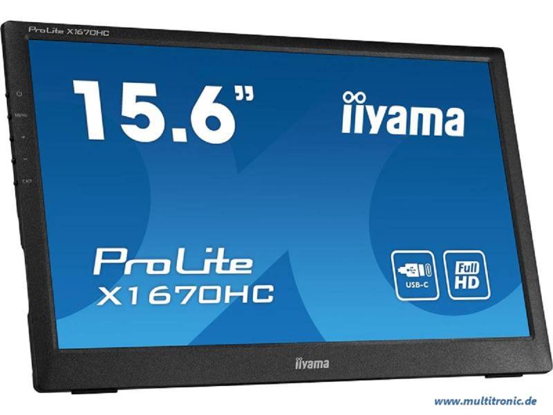 【中古】マウスコンピューター iiyama モバイルモニター 15.6型(1920×1080フルHD/IPS方式パネル/ノングレア液晶/USB Type-C ケーブル付/3年)X1670HC-B1