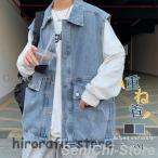 デニムベスト メンズ ジレベスト トップス チョッキ カーディガン 重ね着 前開き カジュアル ゆったり おしゃれ カーゴ かっこいい お兄系