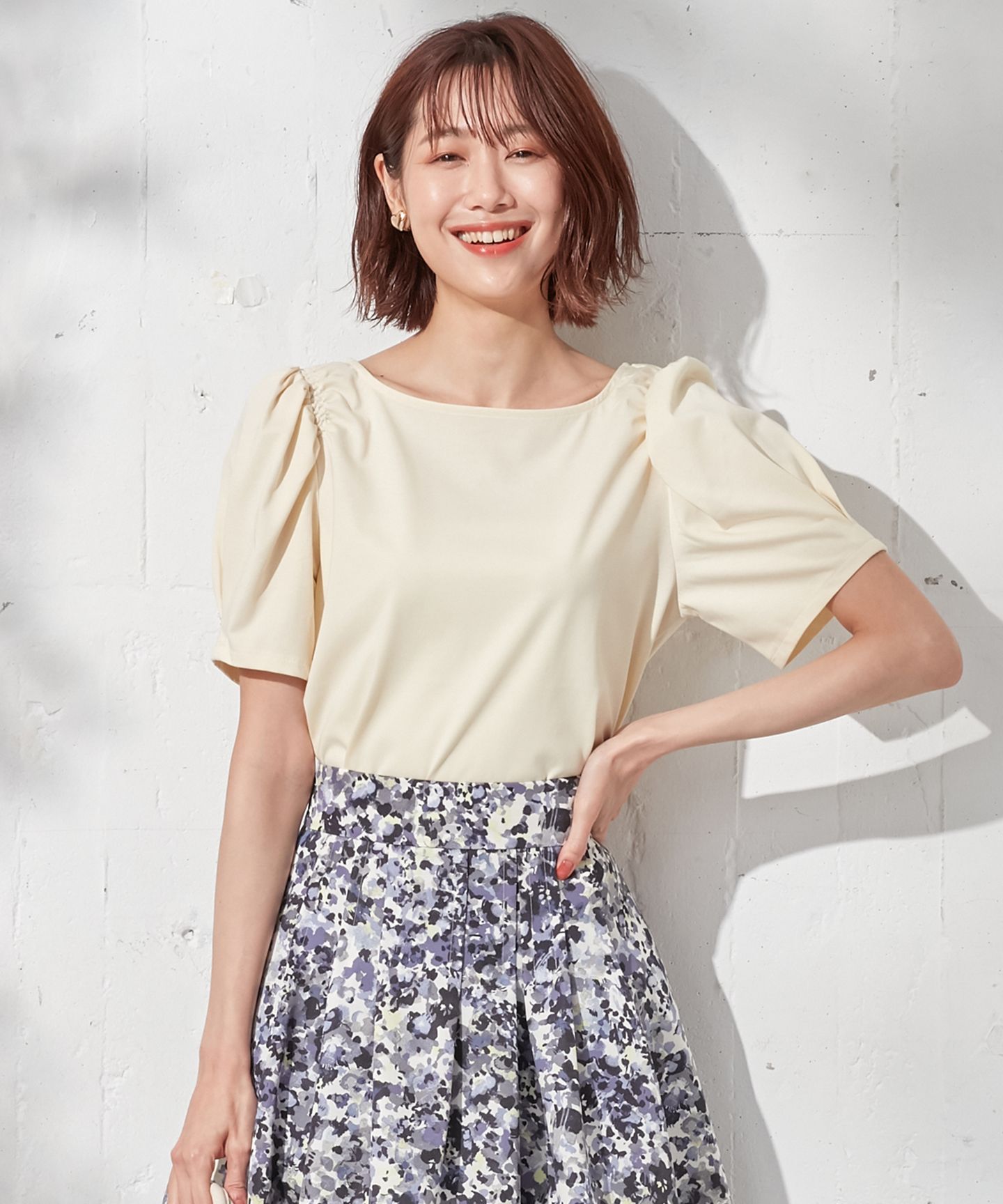 組曲 L(クミキョク エル)/【洗える】マカロンカラーギャザースリーブ カットソー