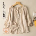 ブラウス七分丈袖レディースシャツゆったり7分丈袖ブラウスカジュアルシャツマカロンカラー7分丈袖シャツ無地春秋夏トップス