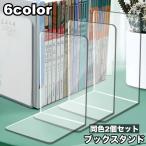 ブックスタンド 2個セット ブックエンド 本立て L型 仕切り スリム 卓上収納 机上 デスク整理整頓 本棚 マガジンラック ブックシェルフ クリア