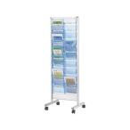 【法人送料無料】 【業務用】 パンフレットスタンド 直立型 マガジンスタンド ラック 3列10段 収納カセット30個 A4サイズ クリアブルー キャスター付 UT-0957