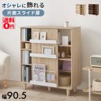 前後分割棚仕様 の 片面スライド マガジンラック 付 ブックシェルフ (幅90.5cm) VKB-7273