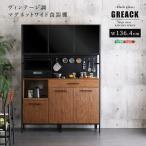 ホームテイスト MGK-18135--WAL ウォールナット GREACK (グリック) ヴィンテージ調マグネットワイド食器棚 ブラックガラス メーカー直送