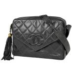 シャネル CHANEL ココマーク フリンジ ショルダーバッグ タッセル マトラッセ ショルダーバッグ レザー ブラック レディース 中古