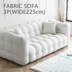 ソファー 225cm もこもこ 3人掛け ホワイト 白 ブークレ かわいい おしゃれ 高級 ふわふわ マシュマロ アームソファ リビングソファ クッション付き 三人掛け