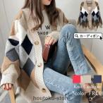カーディガン レディース ニットセーター Uネック ブラウス 菱形柄 オフィス ショート アウター 事務服制服 長袖秋冬 ユニフォーム トップス 前開き