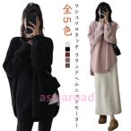 【3/18(水)23時まで61%OFF 半額以下】 ニット セーター 冬 ラウンドヘム ロング レディース 厚手 クルーネック オシャレ 洗える 暖かい プルオーバー ラウンドネック モヘア トップス ゆったり チュニック丈 マシュマロタッチ ストレッチ 体型カバー 防寒 無地 送料無料