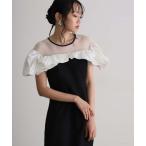 ドレス ミモレ丈&袖ありフォーマルマシュマロジャガードタフタラッフルIラインセレモニー結婚式二次会パーティードレスオケージョンドレス同窓会成人式 お呼