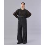 パンツ 裾配色パイピング タックワイドパンツ レディース