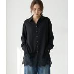 ブラウス シャツ 裾レースロングシャツ レディース