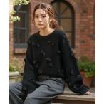 ニット セーター ブークレ×ジョーゼットリボンニット レディース