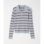 ニット セーター ポロニット ボーダープルオーバー レディース