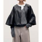 コート アウター フェイクレザーフレアスリーブジャケット レディース