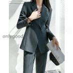 レディース スーツセット 2点セット パンツスーツ ビジネススーツ 女性 春秋新作 テーラード 大きいサイズ 韓国風 着痩せ 体型カバー 大人かわいい