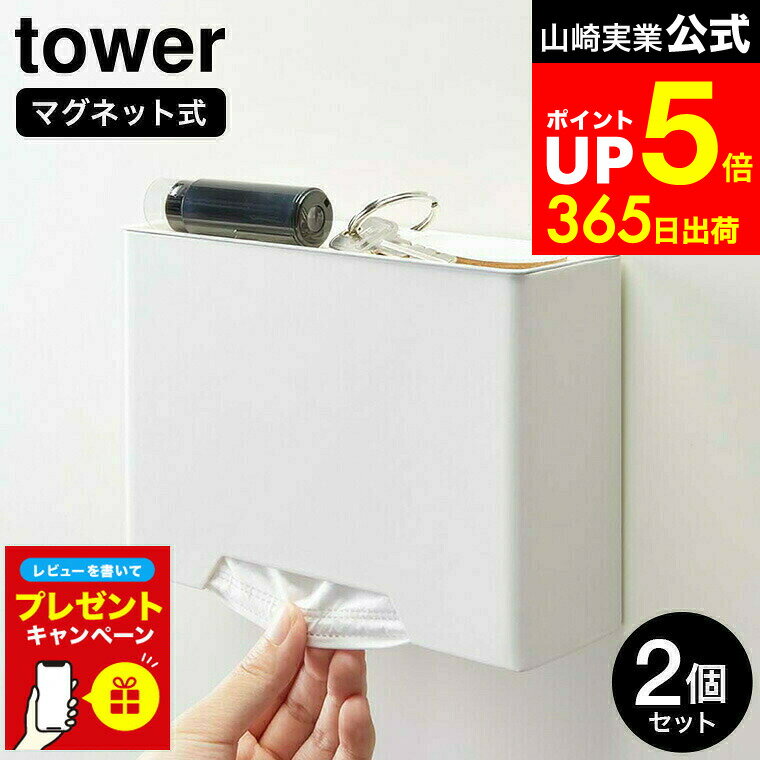 【LINEお友達で最大330円クーポン】【レビュー特典】[ マグネットマスクホルダー タワー 2個セット ] 山崎実業 公式 tower ホワイト/ブラック マスクケース 玄関 マスク 収納 ケース マスク入れ 使い捨てマスク トレー付き 4358 4359 タワーシリーズ