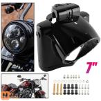 【並行輸入品】 5 3/4インチ バイク用ブラックヘッドライトマスクフロントカウルフォークマウントヘッドライトフェアリング ハーレーダビッドソン用ダイナスポ
