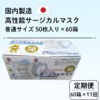 ふるさと納税 由利本荘市 【毎月定期便】国内製造 高性能サージカルマスク 普通サイズ 50枚入り×60箱合計3000枚全11回