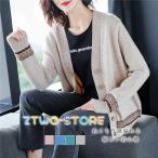 ニット カーディガン レディース 花柄 羽織 アウター 長袖 秋 ショート丈 薄手 シンプル カジュアル 無地 前ボタ 大人 可愛い オシャレ