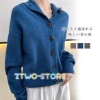 ニット カーディガン レディース 羽織 フード付き アウター 長袖 秋 ショート丈 薄手 シンプル カジュアル 無地 前ボタ 大人 可愛い オシャレ
