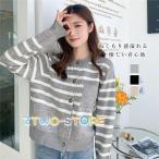 カーディガン レディース ニット ボーダー柄 ショート丈 羽織 アウター 前開け 長袖 秋 薄手 カジュアル オシャレ 無地 シンプル 大人 可愛い