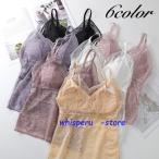 おしゃれカップ付きキャミソール キャミインナー ブラトップ 女性 インナー 下着 肌着 パッド付き 取り外し可能 Vネック レース 透け感 シース