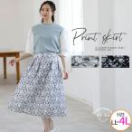 大きいサイズ レディース スカート タックフレア ロング丈 オーガンジー 花柄 フラワープリント 裏地 後ろゴム ボトムス 夏服 30代 40代 50代 ファッション