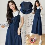 爆買 デニムワンピース レディース ジャンパースカート 大人 ロング キャミワンピース マキシ丈 ノースリーブ サロペット Aライン 大きいサイズ 着痩せ