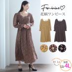 大きいサイズ レディース ワンピース 長袖 ロング丈 ジョーゼット 小花柄 シャーリング スクエアネック ウエストゴム 秋服 30代 40代 50代 ファッション