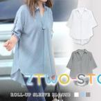 ブラウス レディース 春 夏 春夏 白 シャツ トップス スキッパー きれいめ スキッパーシャツ 半袖 チュニック ロールアップ 上品 ホワイト