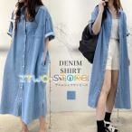 デニムシャツワンピース ロング レディース 半袖 五分袖 デニム ワンピース ロング 膝下 前開き ゆったり 体型カバー マタニティ 春 夏 お洒落
