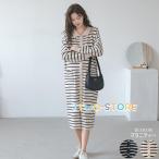 カーディガン ワンピース ミドル丈 レディースドロップショルダー 長袖 ボーダー柄 カジュアルスタイル マタニティー ポロシャツ 可愛い オシャレ