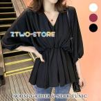 チュニック レディース 春 夏 春夏 トップス 白 黒 七分袖 ブラウス 7分袖 ホワイト ブラック ボルドー Vネック シャツ ウエストギャザー