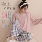 ルームウェア パジャマ レディース チェック柄 上下セット 長袖 長ズボン 春 秋 冬 部屋着 寝間着 通気性 ゆったり 外出 柔らかい