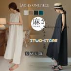 リネン ワンピース ノースリーブ マキシワンピース リネン 夏 綿麻 リネン混 無地 袖なし タンクトップ ミモレ丈 スリット 30代 40代 50代