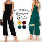サロペット レディース ワイドパンツ オールインワン ガウチョ シンプル ロング丈 カジュアル ゆったり ボトムス 体型カバー おしゃれ 大人 秋