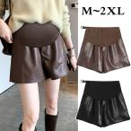 マタニティパンツ ショートパンツ PU レディース 短パン 妊婦 ショーパン アジャスター付き ボトムス レザーパンツ 着痩せ ハイウエスト 体型カバー 合皮 お洒落