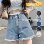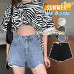 デニムショートパンツ レディース 夏 ハイウエスト ダメージ加工 短パン ジーパン ショーパン 高校生 部屋着 川遊び キャンプ