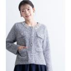 ジャケット ノーカラージャケット ビジューニットジャケット 「マタニティ 産前産後」 レディース