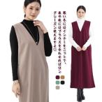 ジャンパースカート 無地 2WAY Vネック ワンピース ロングワンピース 大人 秋 冬 大きいサイズ きれいめ ジャンスカ レディース マタニティ