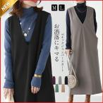 ジャンパースカート ノースリーブワンピース Iライン ジャンスカ vネック マタニティ レディース 春秋冬 体型カバー ストレートシルエット