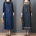 デニムサロペット サロペット オーバーオール ジャンパースカート オールインワン ロング丈 ゆったり 体型カバー 大きいサイズ カジュアル マタニティ