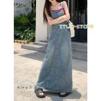 デニムサロペット サロペット オーバーオール ジャンパースカート オールインワン ゆったり 体型カバー マキシ丈 スリット おしゃれ カジュアル