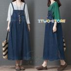 デニムサロペット サロペット オーバーオール ジャンパースカート オールインワン ロング丈 ゆったり カジュアル マタニティ ロングジャンパースカート