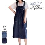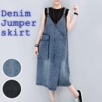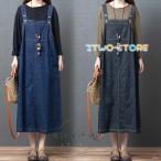 デニム サロペット ジャンパースカート ワンピース マタニティ ジャンスカ ロング丈 ゆったり Iライン ヴィンテージ カジュアル 40代 春 夏 秋 冬 レディース