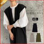 ジャンパースカート ニットワンピース Vネック ニットワンピース ワンピース レディース 膝丈 重ね着 大人 マタニティ カジュアル フォ